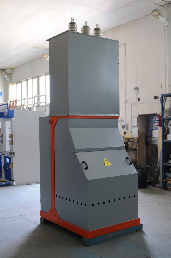 В верхней части шкафа УВН установлен ввод ВН со штыревыми опорными и проходными изоляторами, а также высоковольтные разрядники.